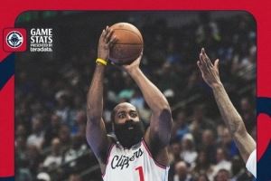 快船官推晒海报回顾哈登昨日精彩表现:队史第1个40+三双