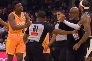 - 2025-11-18布莱恩特挡人时推倒特伦特引发小冲突&布莱恩特吃T 随后两人和解