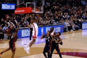嗖的一下就起来了!阿门变向突破钻人缝 直接双手暴扣!