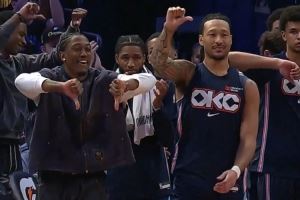 这氛围!卡鲁索快攻不扣篮 雷霆替补席集体弱爆了👎招呼
